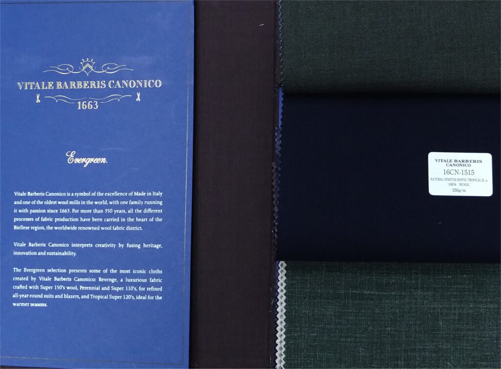 ウールだけでなくリネンやシルクを加えた全116色と、無地中心の定番50色のコレクションの取り揃えで、スーツ向きだけでなくジャケットに向いた生地も沢山取り揃えました。